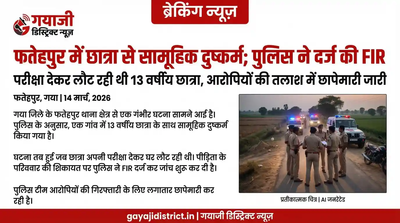 गया जिले के फतेहपुर थाना क्षेत्र में परीक्षा देकर घर लौट रही 13 वर्षीय स्कूली