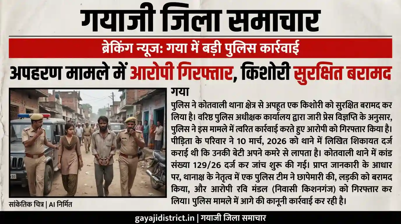 गया के कोतवाली थाना अंतर्गत एक नाबालिग लड़की के लापता होने के मामले में पुलिस