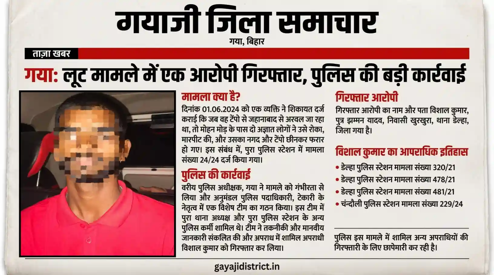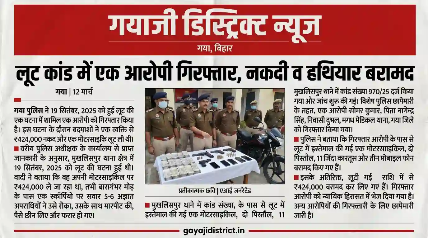 गया पुलिस ने 19 सितंबर 2025 को हुई लूटपाट की घटना में शामिल एक आरोपी